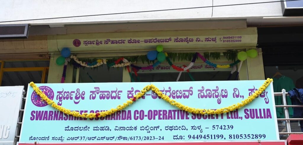 ಸುಳ್ಯ ನಗರದ ರಥಬೀದಿಯ ವಿನಾಯಕ ಬಿಲ್ಡಿಂಗ್ ನ ಮೊದಲನೇ ಮಹಡಿಯಲ್ಲಿ ಕಾರ್ಯಾಚರಿಸುತ್ತಿರುವ ಸ್ವರ್ಣಶ್ರೀ ಸೌಹಾರ್ದ ಕೋ-ಆಪರೇಟಿವ್ ಸೊಸೈಟಿ ನಿಯಮಿತ ಸುಳ್ಯ ಇದು 2023ರಲ್ಲಿ ಅಸ್ತಿತ್ವಕ್ಕೆ ಬಂದಿದ್ದು 2025-26