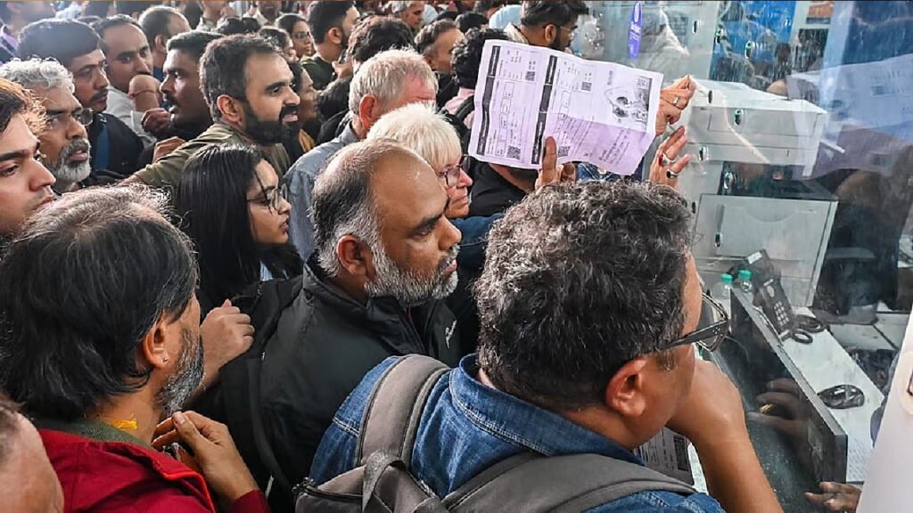 ಇಂಡಿಗೋ ವಿಮಾನ ರದ್ದು, ಬೆಂಗ್ಳೂರು ಏರ್‌ಪೋರ್ಟ್‌ನಲ್ಲಿ ನೂಕು ನುಗ್ಗಲು, ಟಿಕೆಟ್ ಬೆಲೆ 15ರಿಂದ 80,000ಕ್ಕೆ ಏರಿಕೆ