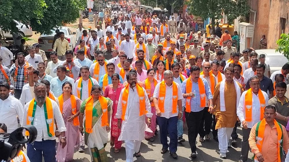 ಬೆಳಗಾವಿ: ಅಗತ್ಯ ವಸ್ತುಗಳ ಬೆಲೆ ಏರಿಕೆ, ಮುಸ್ಲಿಂ ಓಲೈಕೆ ಹಾಗೂ ಪರಿಶಿಷ್ಟರ ಹಣ ಲೂಟಿ ಆರೋಪದಡಿ ಕಾಂಗ್ರೆಸ್ ಸರ್ಕಾರದ ವಿರುದ್ಧ ನಗರದಲ್ಲಿ ಬಿಜೆಪಿಯವರು ಬುಧವಾರ ಎರಡನೇ ಹಂತದ