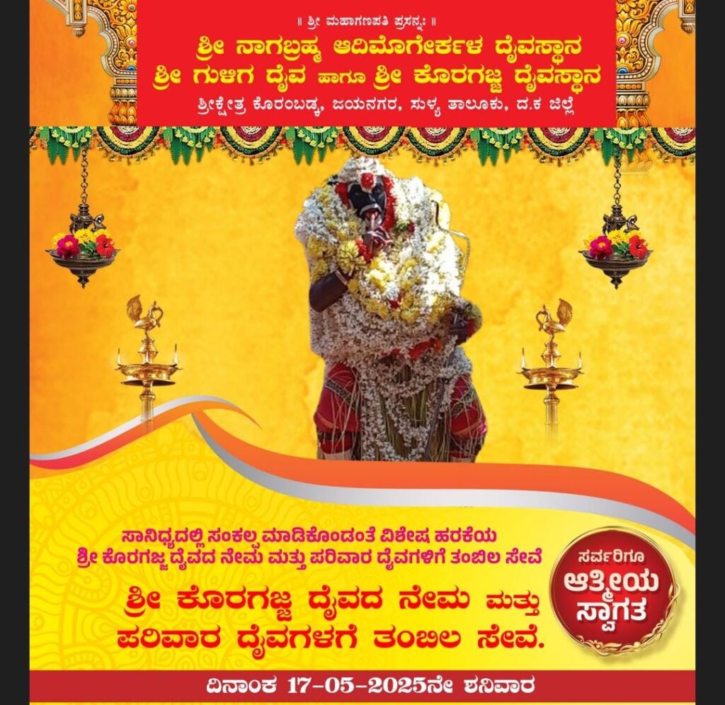ಪ್ರಧಾನಿ ಮೋದಿ ಮೂರನೇ ಬಾರಿ ಅಧಿಕಾರವೇರಿದ ಹಿನ್ನಲೆ ಸಂಕಲ್ಪ ಹರಕೆ ಸೇವೆ | ಬಿಜೆಪಿ ರಾಜ್ಯಾಧ್ಯಕ್ಷ ಬಿ ವೈ ವಿಜೇಯೆಂದ್ರ, ಸಂಸದ ಕ್ಯಾ.ಚೌಟ ಮೇ 17 ರಂದು ಸುಳ್ಯ ಜಯನಗರದಲ್ಲಿ ಕೊರಗಜ್ಜ ನೇಮದಲ್ಲಿ ಭಾಗಿ