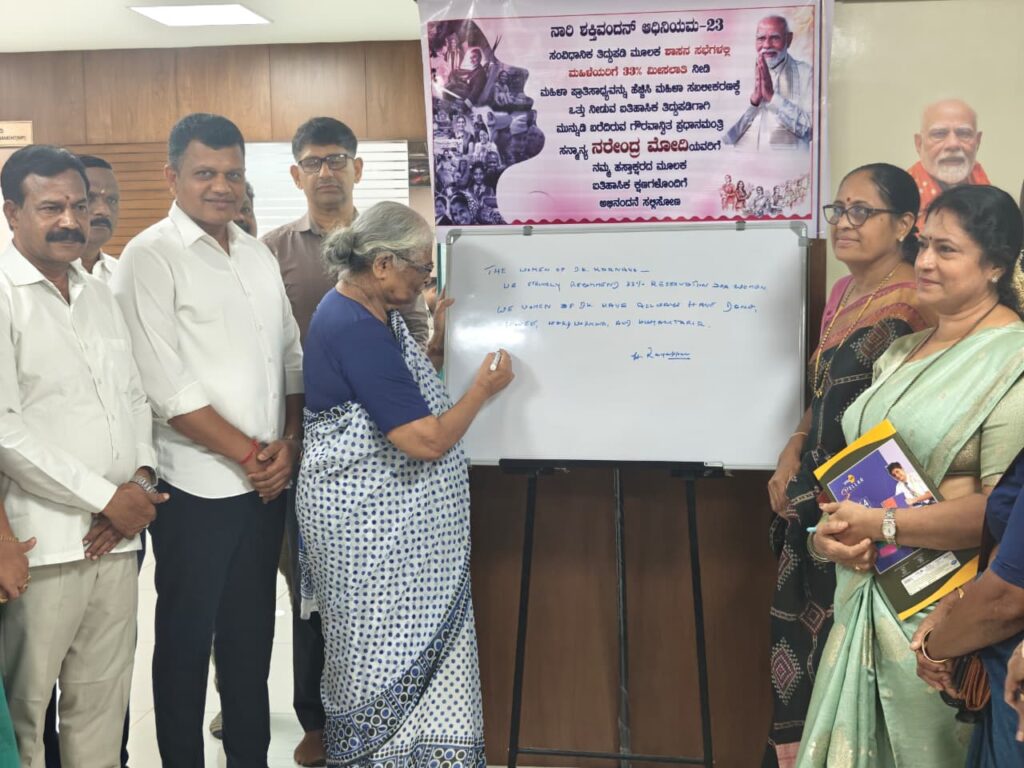 ʼನಾರಿ ಶಕ್ತಿ ವಂದನ್ ಮಸೂದೆʼ ಜಾರಿಗೆ ದಕ್ಷಿಣ ಕನ್ನಡ ಬಿಜೆಪಿ ಮಹಿಳಾ ಮೋರ್ಚಾದಿಂದ ಸಂಸದ ಕ್ಯಾ. ಚೌಟರ ಕಚೇರಿಯಲ್ಲಿ ಸಹಿ ಸಂಗ್ರಹ