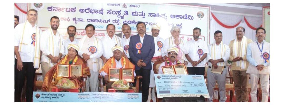 2022 ನೇ ಗೌರವ ಪ್ರಶಸ್ತಿ ಪಡೆದ ಡಾ.ಕಾವೇರಿಮನೆ ಬೋಜಪ್ಪ (ಸಂಶೋಧನೆ ಮತ್ತು ಅರೆಭಾಷೆ ಸಾಹಿತ್ಯ ಕ್ಷೇತ್ರ), ಡಾ.ಕೆ.ವಿ.ಚಿದಾನಂದ (ಶಿಕ್ಷಣ ಮತ್ತು ವೈದ್ಯಕೀಯ ಸೇವೆಗೆ), ತುಂತಜೆ ವೆಂಕಟೇಶ್ (ಗಣೇಶ್) (ಅರೆಭಾಷೆ ಮತ್ತು ಸಂಸ್ಕೃತಿ ಸೇವೆ) ಇವರನ್ನು ಫಲ ತಾಂಬೂಲ ನೀಡಿ ಸನ್ಮಾನಿಸಲಾಯಿತು. 2023ನೇ ಗೌರವ ಪ್ರಶಸ್ತಿ ಪಡೆದ ಕುಯಿಂತೋಡು ದಾಮೋದರ(ಅರೆಭಾಷೆ ಸಾಹಿತ್ಯ ಮತ್ತು ಶೈಕ್ಷಣಿಕ ಸೇವೆ), ಎ.ಕೆ.ಹಿಮಕರ(ಅರೆಭಾಷೆ ಅಧ್ಯಯನ ಮತ್ತು ಸಂಶೋಧನೆ) ಮತ್ತು ಕೂಡಕಂಡಿ ಕಾವೇರಮ್ಮ ಸೋಮಣ್ಣ (ಅರೆಭಾಷೆ ಸಾಧಕಿ ಮತ್ತು ಕಲಾ ಪೋಷಕರು) ಇವರನ್ನು ಆತ್ಮೀಯವಾಗಿ ಫಲ ತಾಂಬೂಲ ನೀಡಿ ಸನ್ಮಾನಿಸಲಾಯಿತು.ಸಂಶೋಧನಾ ಪ್ರಬಂಧ ಮತ್ತು ಕೃತಿಗಳ ಪರಿಚಯವನ್ನು ಚಂದ್ರಾವತಿ ಬಡ್ಡಡ್ಕ ನಿರ್ವಹಿಸಿದರು. ಗೌರವ ಪ್ರಶಸ್ತಿ ಪುರಸ್ಕೃತರು ಪರಿಚಯವನ್ನು ಅಕಾಡೆಮಿ ಸದಸ್ಯರಾದ ಲತಾ ಪ್ರಸಾದ್ ಕುದ್ದಾಜೆ, ಡಾ.ಎನ್.ಎ.ಜ್ಞಾನೇಶ್, ಮೋಹನ ಪೊನ್ನಚನ, ತೇಜಕುಮಾರ್ ಕುಡೆಕಲ್ಲು, ಲೋಕೇಶ್ ಊರುಬೈಲು, ಸಂದೀಪ್ ಪುಳಕಂಡ ನಿರ್ವಹಿಸಿದರು.