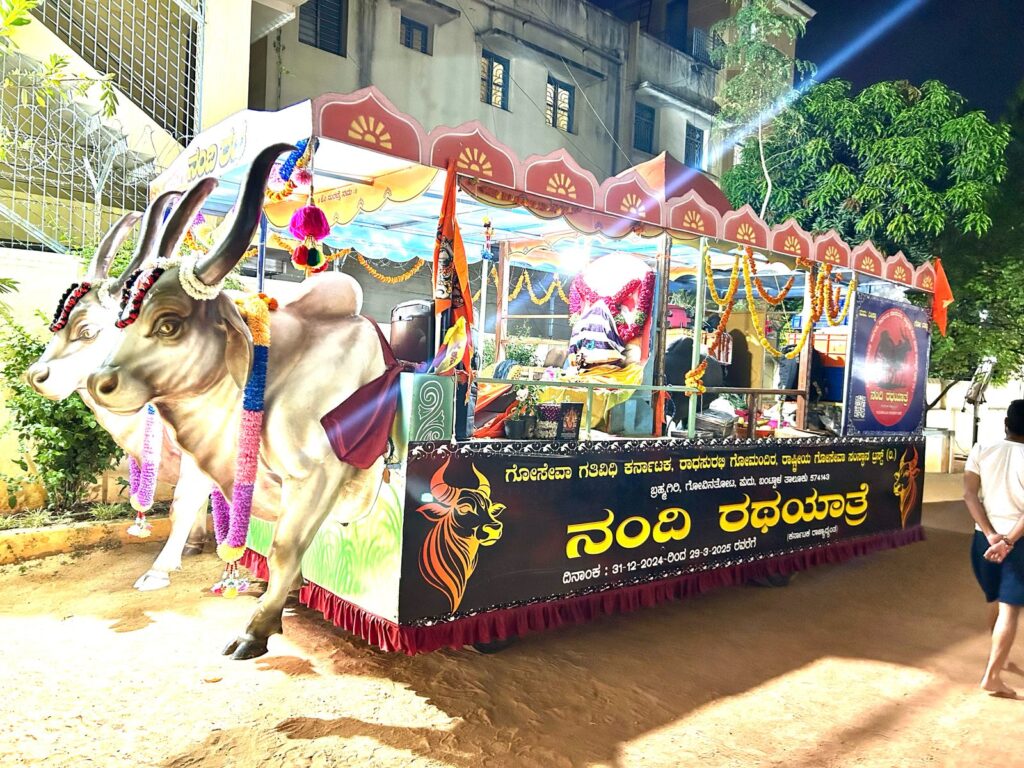 ಗೋ ಸೇವಾ ಗತಿವಿಧಿ ಕರ್ನಾಟಕ,ರಾಧ ಸುರಭಿ ಗೋಮಂದಿರ, ರಾಷ್ಟ್ರೀಯ ಗೋ ಸೇವಾ ಸಂಸ್ಥಾನ ಟ್ರಸ್ಟ್ (ರಿ.)ಬ್ರಹ್ಮಗಿರಿ, ಗೋವಿನತೋಟ, ಪುದು, ಬಂಟ್ವಾಳ ತಾಲೂಕು ವತಿಯಿಂದ ರಾಜ್ಯಾದ್ಯಂತ ನಂದಿ ರಥ ಗೋ ಯಾತ್ರೆ ಯಶಸ್ವಿಯಾಗಿ ನಡೆಯುತ್ತಿದೆ.ಡಿಸೆಂಬರ್ 31/12/24 ರಂದು ರಾಜ್ಯಾದ್ಯಂತ ಆರಂಭಗೊಂಡ ಯಾತ್ರೆ ಮಾರ್ಚ್ 29 ಕ್ಕೆ ಸಮಾರೋಪಗೊಳ್ಳಲಿದೆ.