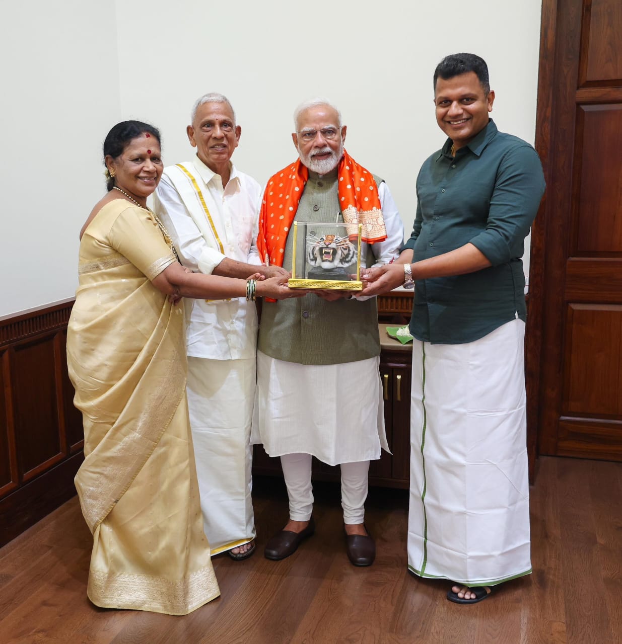 ಕ್ಯಾ. ಚೌಟ ಅವರು ತಮ್ಮ ತಂದೆ ಸೇಸಣ್ಣ ಚೌಟ ಹಾಗೂ ತಾಯಿ ಶ್ರೀಮತಿ ಪುಷ್ಪಾ ಚೌಟ ಅವರೊಂದಿಗೆ ನರೇಂದ್ರ ಮೋದಿ ಅವರನ್ನು ಪ್ರಧಾನಮಂತ್ರಿಗಳ ಕಚೇರಿಯಲ್ಲಿ ಭೇಟಿ ಮಾಡಿ ಅವರ ಆಶೀರ್ವಾದ ಹಾಗೂ ಮಾರ್ಗದರ್ಶನವನ್ನು ಪಡೆದುಕೊಂಡಿದ್ದಾರೆ. ಈ ಸಂದರ್ಭದಲ್ಲಿ ಕ್ಯಾ. ಚೌಟ ಅವರು ತುಳುನಾಡಿನ ಸಂಸ್ಕೃತಿಯ ಸಂಕೇತವಾಗಿರುವ ಪಿಲಿ ನಲಿಕೆಯಲ್ಲಿ ಪ್ರಧಾನವಾಗಿರುವ ‘ಪಿಲಿ ಮಂಡೆ’ ( ಹುಲಿ ವೇಷದ ಮುಖವಾಡ)ಯನ್ನು ಸ್ಮರಣಿಕೆ ರೂಪದಲ್ಲಿ ಪ್ರಧಾನಿಯವರಿಗೆ ನೀಡಿದರು. ಜತೆಗೆ, ಮಂಗಳೂರು ಕಂಬಳದ ಪೋಟೋ ಫ್ರೇಮ್ ಮತ್ತು ಕೊಲ್ಲೂರು ಶ್ರೀ ಮೂಕಾಂಬಿಕೆ ದೇವಸ್ಥಾನದ ಪ್ರಸಾದವನ್ನು ಕೂಡ ನೀಡುವ ಮೂಲಕ ಈ ಅಪೂರ್ವ ಅವಕಾಶ ಹಾಗೂ ಅತ್ಯಂತ ಗೌರವದ ಈ ಭೇಟಿಯನ್ನು ಸ್ಮರಣೀಯವಾಗಿಸಿಕೊಂಡರು.
