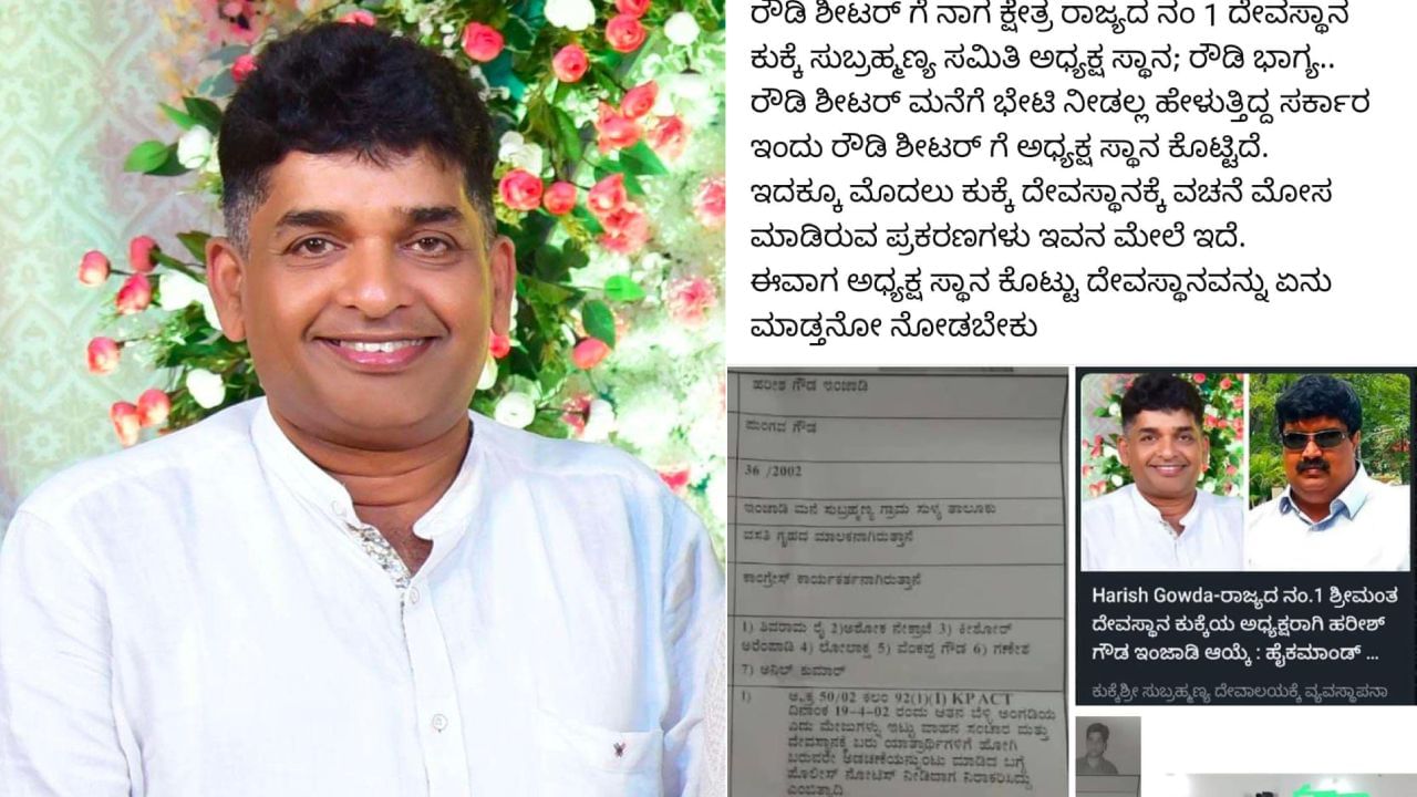 ರಾಜ್ಯದ ಶ್ರೀಮಂತ ದೇಗುಲ ಕುಕ್ಕೆ ಸುಬ್ರಹ್ಮಣ್ಯ ದೇವಸ್ಥಾನ ಆಡಳಿತ ಸಮಿತಿಗೆ ಮಾಜಿ ರೌಡಿಶೀಟರ್ ಆಗಿರುವ ಕಾಂಗ್ರೆಸ್ ಮುಖಂಡ ಹರೀಶ್ ಇಂಜಾಡಿ ಎಂಬವರನ್ನು ಅಧ್ಯಕ್ಷರನ್ನಾಗಿ ನೇಮಕ ಮಾಡಿರುವುದು ಬಿಜೆಪಿ ಟೀಕೆಗೆ ಗುರಿಯಾಗಿದೆ.