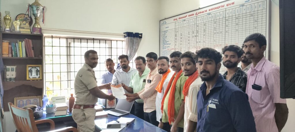 ರಾಜ್ಯ ಮತ್ತು ದೇಶದ ಕಾನೂನಿನ್ವಯ ಜಾನುವಾರು ಹತ್ಯೆ ಪ್ರತಿಬಂಧಕ ಹಾಗೂ ಸಂರಕ್ಷಣಾ ಕಾಯ್ದೆ ಜಾರಿಯಲ್ಲಿದ್ದು ಅದರ ಪ್ರಕಾರ ಕುರ್ಬಾನಿಗೆ ನಿಷೇಧವಿದೆ. ಕುರ್ಬಾನಿಗೆ ಜಾನುವಾರು ಸಾಗಾಟವು ಶಿಕ್ಷಾರ್ಹ ಅಪರಾಧ. ಇದಕ್ಕೆ ಒದಗಿಸುವ ಸ್ಥಳವನ್ನು ಕಾನೂನು ಪ್ರಕಾರ ಮುಟ್ಟುಗೋಲು ಹಾಕಲು ಅವಕಾಶವಿದೆ. ಕಾಯ್ದೆ 1959 ತಿದ್ದುಪಡಿ 1975 ರ ಪ್ರಕಾರ ಜಾನುವಾರು ಹತ್ಯೆ ಮಾಡುವುದಕ್ಕೆ ನಿಷೇಧ ಹೇರಲಾಗಿದೆ. ಅಕ್ರಮ ಜಾನುವಾರು ಸಾಗಾಟವಾಗದಂತೆ ಇಲಾಖೆ ಅಲ್ಲಲ್ಲಿ ನಾಕಾಬಂಧಿ ಹಾಕಬೇಕು. ಜಾನುವಾರು ಹತ್ಯೆ ತಡೆಯಲು ಸಾರ್ವಜನಿಕರಿಗೂ ಅವಕಾಶವಿದ್ದು ಇಲಾಖೆ ಸಾರ್ವಜನಿಕರು ಅವಕಾಶವನ್ನು ಉಪಯೋಗಿಸದಂತೆ ಮುಂಚಿತವಾಗಿ ಎಚ್ಚೆತ್ತು ಕೊಂಡು ಕಾನೂನು ಬಾಹಿರ ಚಟುವಟಿಕೆ ನಡೆಯದ ಹಾಗೆ ಎಚ್ಚರಿಕೆ ವಹಿಸಬೇಕು. ಕಾನೂನು ಪ್ರಕಾರಇಲಾಖೆಯೊಂದಿಗೆ ಕೈ ಜೋಡಿಸಲು ಸಂಘಟನೆಯ ಕಾರ್ಯಕರ್ತರು ಸದಾ ಸಿದ್ಧರಿದ್ದೇವೆ ಎಂಬ ಬರಹದ ಮನವಿ ಪತ್ರವನ್ನು ಎಸ್.ಐ ಸಂತೋಷ್ ರವರ ಮುಖೇನ ನೀಡಲಾಯಿತು.