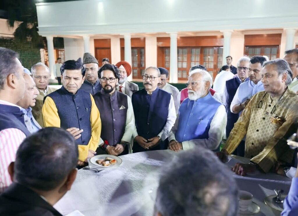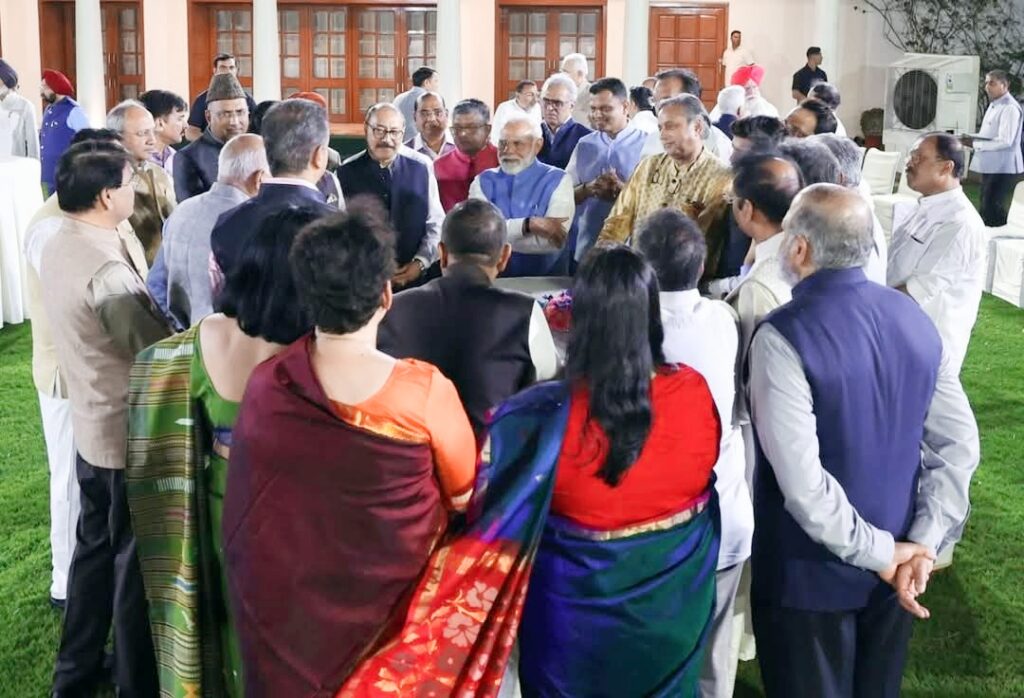 ಪ್ರಧಾನಿ ಮೋದಿ ಅವರು ತಮ್ಮ ನಿವಾಸದಲ್ಲಿ ಸರ್ವಪಕ್ಷಗಳ ಜಾಗತಿಕ ಔಟ್ ರೀಚ್ ಪ್ರತಿನಿಧಿಯ ಸದಸ್ಯರ ಜೊತೆ ಚರ್ಚೆ ನಡೆಸಿದರು.