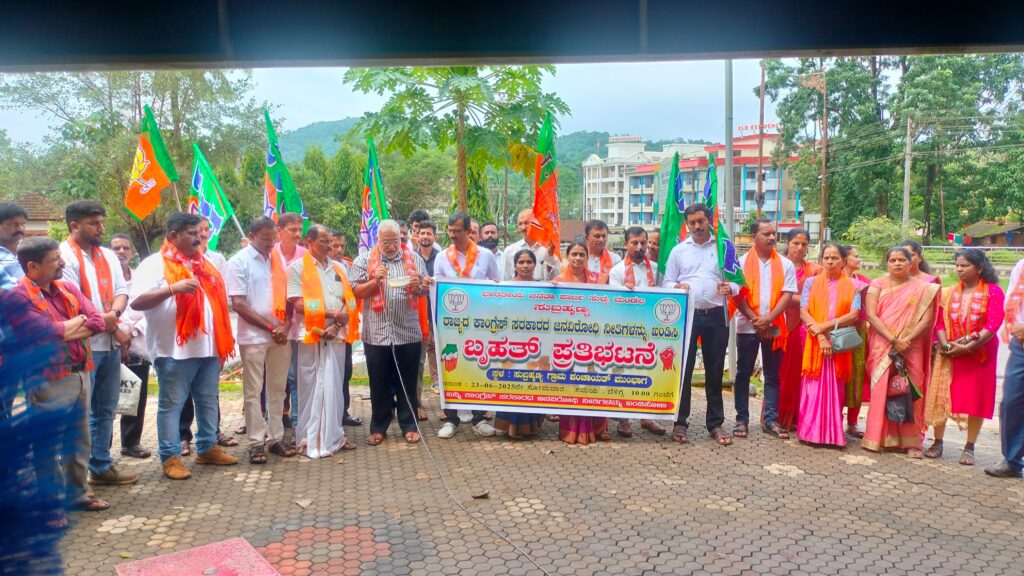ರಾಜ್ಯಸರ್ಕಾರ ಜನ ವಿರೋಧಿ ನೀತಿ ಮತ್ತು ವೈಫಲ್ಯ ಖಂಡಿಸಿ ಸುಬ್ರಹ್ಮಣ್ಯ ಗ್ರಾಮ ಪಂಚಾಯತ್ ಬಳಿ ಬಿಜೆಪಿ ಕಾರ್ಯಕರ್ತರಿಂದ ಪ್ರತಿಭಟನೆ ನಡೆಯಿತು.