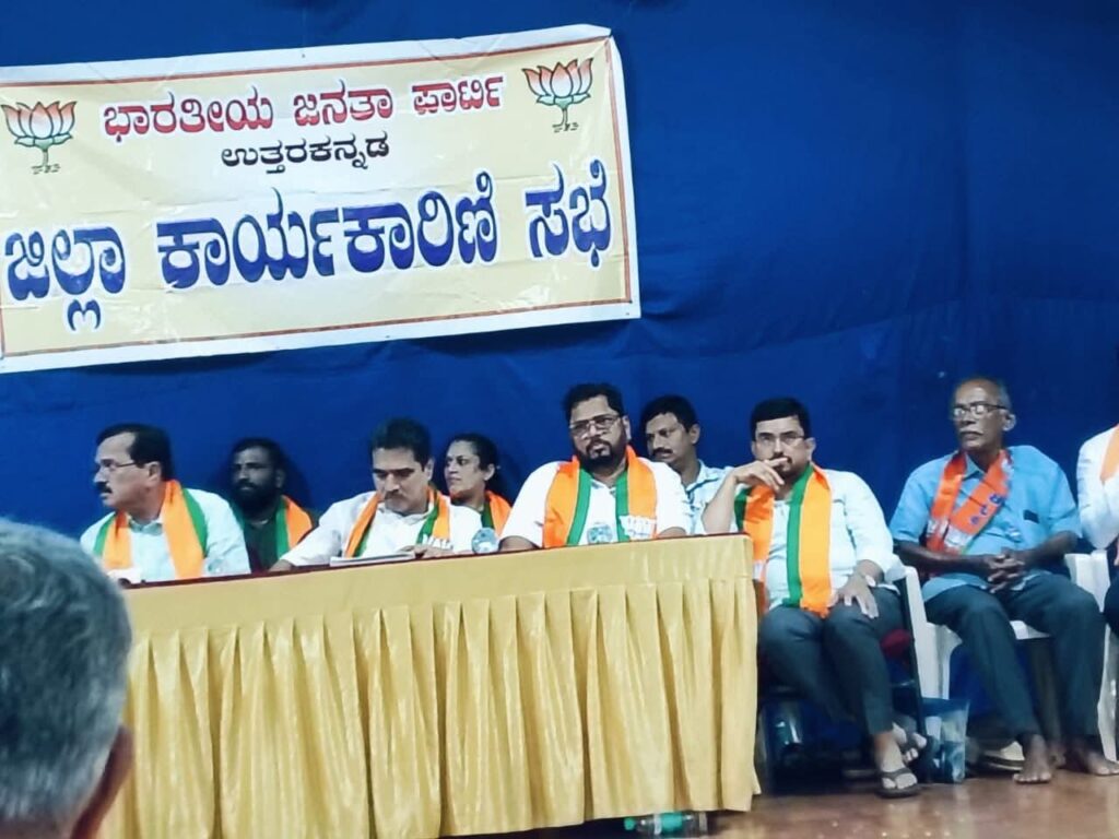ಬಿಜೆಪಿ ಉತ್ತರಕನ್ನಡ ಜಿಲ್ಲಾ ಕಾರ್ಯಕಾರಿಣಿ ಸಭೆ ಕುಮಟಾದ ರೋಟರಿ ಕ್ಲಬ್ ನ ನಾದಶ್ರೀ ಸಭಾಂಗಣದಲ್ಲಿ ಗುರುವಾರ ನಡೆಯಿತು. ಕುಮಟಾ ಶಾಸಕ ಶ್ರೀ ದಿನಕರ ಶೆಟ್ಟಿ ಕಾರ್ಯಕಾರಿಣಿ ಉದ್ಘಾಟಿಸಿ ಮಾತನಾಡಿದರು. ರಾಜ್ಯ ಕಾಂಗ್ರೆಸ್ ಸರಕಾರದ ಆಡಳಿತ ವೈಫಲ್ಯವನ್ನು ಎಳೆ ಎಳೆಯಾಗಿ ಬಿಡಿಸಿ ಹೇಳಿದರು.ಜಿಲ್ಲಾಧ್ಯಕ್ಷ ಶ್ರೀ ಎನ್.ಎಸ್. ಹೆಗಡೆ ಅಧ್ಯಕ್ಷತೆ ವಹಿಸಿ ಪಕ್ಷ ಸಂಘಟನೆ ಅವಲೋಕನ ನಡೆಸಿ ಮಾರ್ಗದರ್ಶನ ಮಾಡಿದರು.
