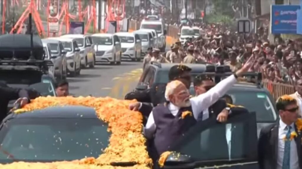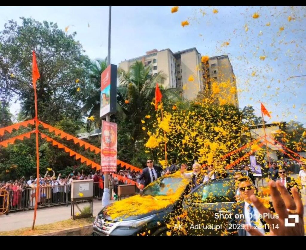 ಉಡುಪಿ ನಗರಕ್ಕೆ ಆಗಮಿಸಿದ ಪ್ರಧಾನಿ ರೋಡ್ ಶೋ ಶುರು ಮಾಡಿದ್ದಾರೆ. ಬೆಳಗ್ಗಿನಿಂದಲೂ ಮೋದಿ ಅವರನ್ನ ಕಣ್ಣುಂಬಿಕೊಳ್ಳಲು ಕಾದು ಕುಳಿತಿದ್ದ ಜನ ಪುಷ್ಪವೃಷ್ಟಿ ಮಾಡಿ ಸಂತಸ ಪಟ್ಟಿದ್ದಾರೆ. ಹಾಗೆಯೇ ಯಾರೊಬ್ಬರಿಗೂ ನಿರಾಸೆ ಮಾಡದ ಪ್ರಧಾನಿ ಮೋದಿ ಎಲ್ಲರತ್ತ ಕೈಬೀಸಿ ನಗೆ ಬೀರಿದ್ದಾರೆ.