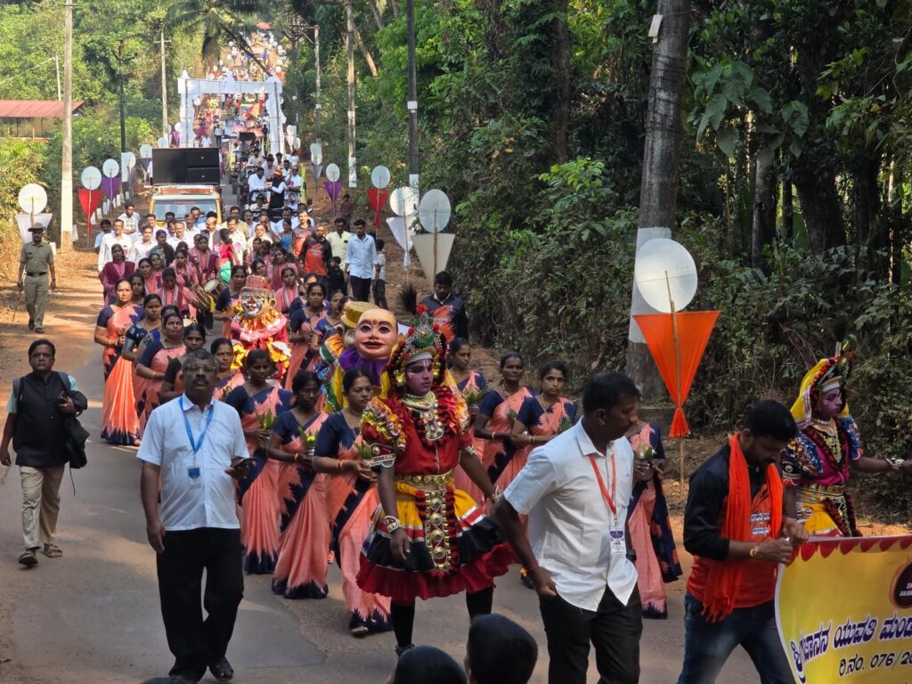ಪಂಜದಲ್ಲಿ ನಡೆಯುತ್ತಿರುವ ರಾಜ್ಯ ಯುವ ಸಂಭ್ರಮದಲ್ಲಿ ಜ.18ರಂದು ಬೆಳಗ್ಗೆ ಪಂಜ ಸಿ.ಎ. ಬ್ಯಾಂಕ್ ಬಳಿಯಿಂದ ಅದ್ದೂರಿ ಮೆರವಣಿಗೆ ನಡೆಯಿತು. ಕೇರಳದ ಚೆಂಡೆ, ನಾಸಿಕ್ ಬ್ಯಾಂಡ್ ಸದ್ದಿನೊಂದಿಗೆ ಸುಗ್ಗಿ ನೃತ್ಯ, ಕರಗ, ಸಿದ್ಧವೇಶ, ಯಕ್ಷಗಾನ ನೃತ್ಯ, ಕಲ್ಲಡ್ಕ ಗೊಂಬೆ, ಕಂಬಳದ ಮೆರುಗು, ಜನಪದ ಸೊಬಗು, ನವಿಲು ನೃತ್ಯ, ಕೋಳಿ ಕಟ್ಟದ ದೃಶ್ಯ, ಹುಲಿ ವೇಷಗಳೊಂದಿಗೆ ಮಹಿಳೆಯರ ಪೂರ್ಣ ಕುಂಭ ಸ್ವಾಗತ ಮೆರವಣಿಗೆಗೆ ಮೆರುಗು ನೀಡಿತು.