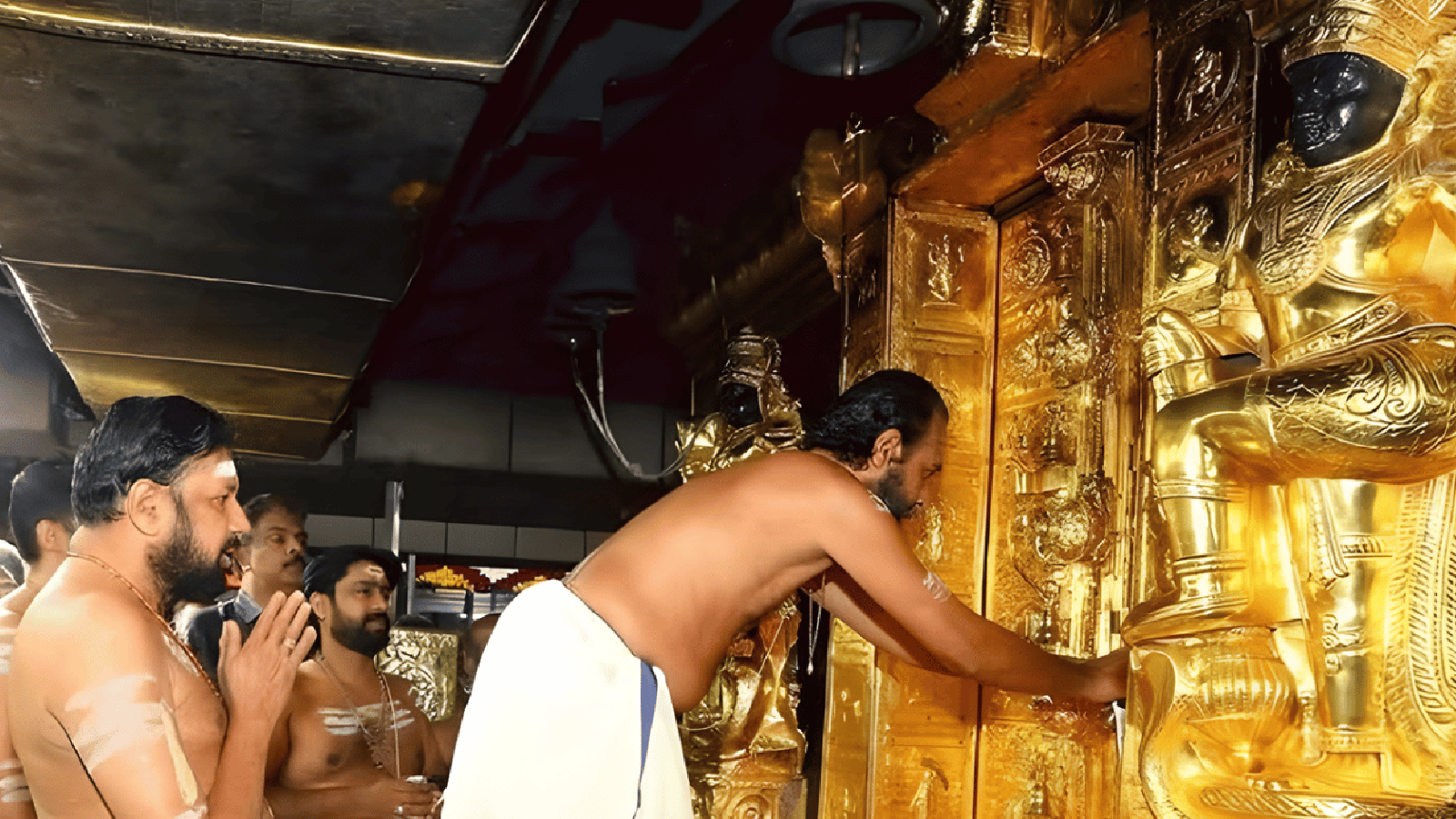 ಪಂದಳಂ ಅರಮನೆಯ ರಾಜ ಪ್ರತಿನಿಧಿ ಪುನರ್ಧನಾಳ್ ನಾರಾಯಣ ವರ್ಮ ಮಂಗಳವಾರ ಬೆಳಗ್ಗೆ ಅಯ್ಯಪ್ಪನ ದರ್ಶನ ಪಡೆದರು. ಬೆಳಗ್ಗೆ 5ಕ್ಕೆ ದೇಗುಲ ತೆರೆದ ಬಳಿಕ ಪೂರ್ವ ಮಂಟಪದಲ್ಲಿ ತಂತ್ರಿ ಕಂಠರರ್ ಮಹೇಶ್ ಮೋಹನರ್ ಗಣಪತಿ ಹೋಮ ನೆರವೇರಿಸಿದರು.ರಾಜ ಪ್ರತಿನಿಧಿಯ ದರ್ಶನದ ಬಳಿಕ ಪ್ರಧಾನ ಅರ್ಚಕ ಇ.ಡಿ.ಪ್ರಸಾದ್ ನಂಬೂದಿರಿ, ಅಯ್ಯಪ್ಪ ಮೂರ್ತಿಗೆ ಭಸ್ತಾಭಿಷೇಕ ನೆರವೇರಿಸಿ ಕೈಗೆ ಯೋಗದಂಡ ನೀಡಿ, ಕೊರಳಿಗೆ ಜಪ ಮಾಲೆ ತೊಡಿಸಿದರು.ಹರಿವರಾಸನಂ ಗಾಯನದೊಂದಿಗೆ ದೇಗುಲದಲ್ಲಿ ಬೆಳಗಲಾದ ದೀಪವನ್ನು ನಂದಿಸಿ ಗರ್ಭಗುಡಿಯಿಂದ ಹೊರ ಬಂದು ದೇಗುಲ ಮುಚ್ಚಿ ಕೀಲಿಯನ್ನು ರಾಜಪ್ರತಿನಿಧಿಗೆ ಹಸ್ತಾಂತರಿಸಿದರು.