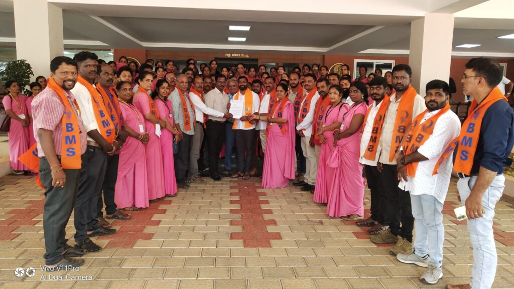 ಭಾರತೀಯ ಮಜ್ದೂರ್ ಸಂಘ (BMS) ದಕ್ಷಿಣ ಕನ್ನಡ ಜಿಲ್ಲಾ ಸಮಿತಿಯಿಂದ ವಿವಿಧ ಕಾರ್ಮಿಕರ ಬೇಡಿಕೆಗಳ ಈಡೇರಿಕಾಗಿ ಪ್ರತಿಭಟನೆ ಮತ್ತು ಮನವಿಯನ್ನು ದ ಕ ಜಿಲ್ಲಾಧಿಕಾರಿಗಳ ಮತ್ತು ಪ್ರಾದೇಶಿಕ ಭವಿಷ್ಯ ನಿಧಿ ಆಯುಕ್ತರ ಕಚೇರಿಯಲ್ಲಿ ಮಾನ್ಯ ಪ್ರಧಾನಮಂತ್ರಿಗಳಿಗೆ, ಕೇಂದ್ರ ಕಾರ್ಮಿಕ ಸಚಿವರಿಗೆ, ರಾಜ್ಯದ ಮುಖ್ಯಮಂತ್ರಿಗೆ, ರಾಜ್ಯ ಕಾರ್ಮಿಕ ಸಚಿವರಿಗೆ ಕಾರ್ಮಿಕರ ದೀರ್ಘಕಾಲದ ಸಮಸ್ಯೆಗಳು ಹಾಗೂ ಕಾರ್ಮಿಕ ವಿರೋಧಿ ನೀತಿಗಳ ವಿರುದ್ಧ ಮಾಡಲಾಯಿತು.ಪ್ರತಿಭಟನೆ ಮತ್ತು ಮನವಿಯ ನೇತೃತ್ವವನ್ನು ಬಿಎಮ್ಎಸ್ ಜಿಲ್ಲಾ ಅಧ್ಯಕ್ಷ, ವಕೀಲರಾದ ಅನಿಲ್ ಕುಮಾರ್ ಯು ವಹಿಸಿದ್ದರು. ಪ್ರತಿಭಟನೆಯಲ್ಲಿ ಕೇಂದ್ರ ಸರ್ಕಾರವು ಜಾರಿಗೆ ತಂದಿರುವ ಹೊಸ ಕಾರ್ಮಿಕ ಸಂಹಿತೆಗಳ ಕುರಿತು ಸ್ವಾಗತ ವ್ಯಕ್ತಪಡಿಸಿದರೂ, ಹಲವು ಪ್ರಮುಖ ಕಾರ್ಮಿಕ ಸಮಸ್ಯೆಗಳು ಇಂದಿಗೂ ಬಾಕಿ ಉಳಿದಿರುವ ಬಗ್ಗೆ ತೀವ್ರ ಆಕ್ರೋಶ ವ್ಯಕ್ತಪಡಿಸಲಾಯಿತು.