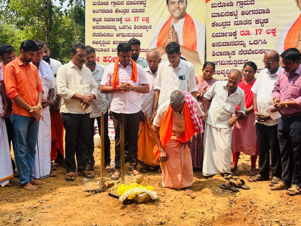 ಮರೋಡಿ : ಮಾ 07 ಬೆಳ್ತಂಗಡಿ ಶಾಸಕ ಹರೀಶ್ ಪೂಂಜ ರವರು ಮರೋಡಿ ಗ್ರಾಮದ ಮಾವಿನಕಟ್ಟೆ ಎಂಬಲ್ಲಿ ರೂ. 17.00 ಲಕ್ಷ ವೆಚ್ಚದಲ್ಲಿ ನಿರ್ಮಾಣಗೊಳ್ಳಲಿರುವ ಅಂಗನವಾಡಿ ಕೇಂದ್ರದ ನೂತನ ಕಟ್ಟಡ ಕಾಮಗಾರಿಗೆ ಮಾ 07 ರಂದು ಶಿಲಾನ್ಯಾಸ ನೆರವೇರಿಸಿದರು. ಈ ಸಂದರ್ಭದಲ್ಲಿಮಾಜಿ ತಾಲೂಕು ಪಂಚಾಯತ್ ಸದಸ್ಯರಾದ ಜಯಂತ ಕೋಟ್ಯಾನ್,