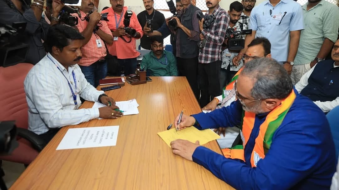 ಮುಂಬರುವ ಕೇರಳ ವಿಧಾನಸಭಾ ಚುನಾವಣೆಗೆ ನೇಮಮ್ ಕ್ಷೇತ್ರದಿಂದ ಪಕ್ಷದ ಅಭ್ಯರ್ಥಿಯಾಗಿ ಕೇರಳ ಭಾರತೀಯ ಜನತಾ ಪಕ್ಷದ ಅಧ್ಯಕ್ಷ ರಾಜೀವ್ ಚಂದ್ರಶೇಖರ್ ನಾಮಪತ್ರ ಸಲ್ಲಿಸಿದರು, ರಾಜಸ್ಥಾನ ಮುಖ್ಯಮಂತ್ರಿ ಭಜನ್ಲಾಲ್ ಶರ್ಮಾ ಬೆಂಬಲ ವ್ಯಕ್ತಪಡಿಸುವ ಕಾರ್ಯಕ್ರಮದಲ್ಲಿ ಉಪಸ್ಥಿತರಿದ್ದರು.
