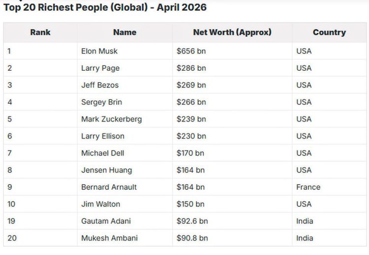 ಪಟ್ಟಿಯ ಪ್ರಕಾರ, ವಿಶ್ವದ 20 ಶ್ರೀಮಂತ ವ್ಯಕ್ತಿಗಳಲ್ಲಿ ಏಳು ಮಂದಿ 2026 ರಲ್ಲಿ ಕುಸಿತವನ್ನು ದಾಖಲಿಸಿದ್ದಾರೆ. LVMH ನ ಸಿಇಒ ಬರ್ನಾರ್ಡ್ ಅರ್ನಾಲ್ಡ್ ತೀವ್ರ ಹೊಡೆತವನ್ನು ಅನುಭವಿಸಿದ್ದಾರೆ, $44 ಬಿಲಿಯನ್ ನಷ್ಟ ಅನುಭವಿಸಿದ್ದಾರೆ.